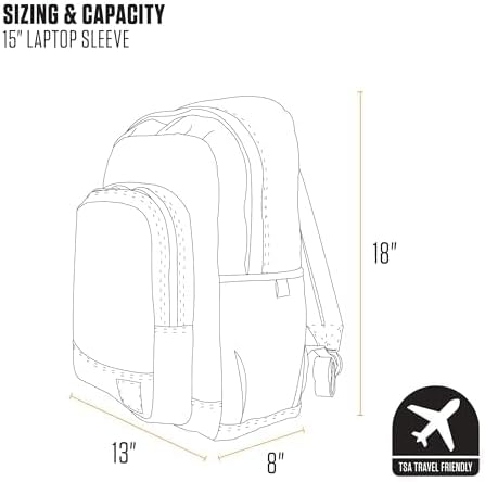 Equipped with a 15″ laptop sleeve, this backpack provides secure storage for your tech essentials, keeping them safe and easily accessible on the go. Multiple compartments offer ample space for organizing your gear, from books and notebooks to water bottles and snacks.