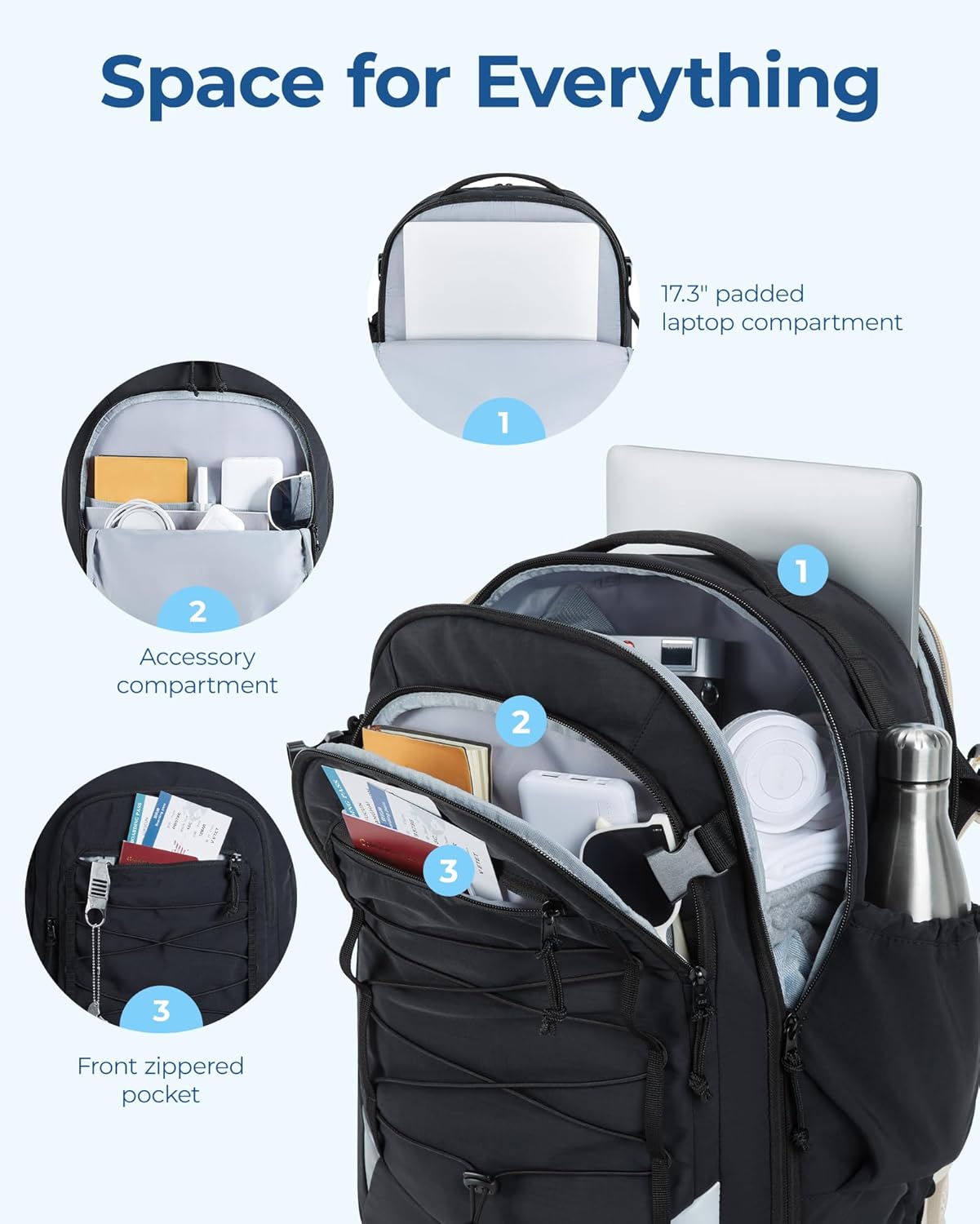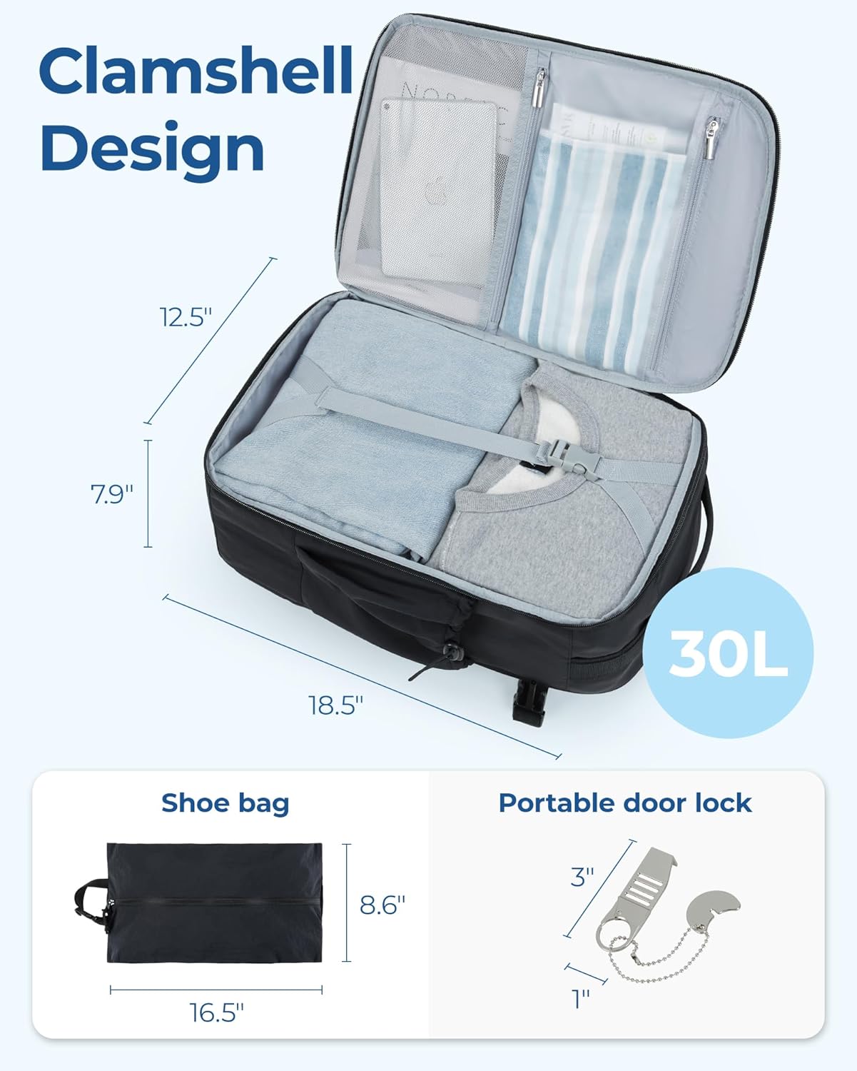 Carry On Travel Backpack, 17.3 Inch Large Travel backpack Carry On Flight Approved, Personal Item Backpack Travel Bag With Shoe Bag, 30L Water Resistant Casual Daypack, Black